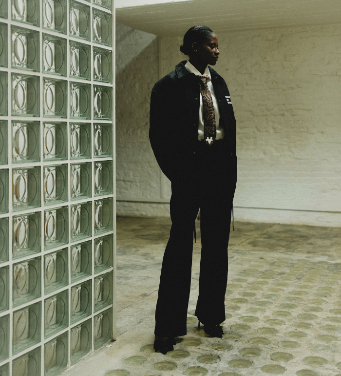 Designed to sit between streetwear and gallery piece, this jacket works as a daily outer layer or a standout top piece in a full black look.